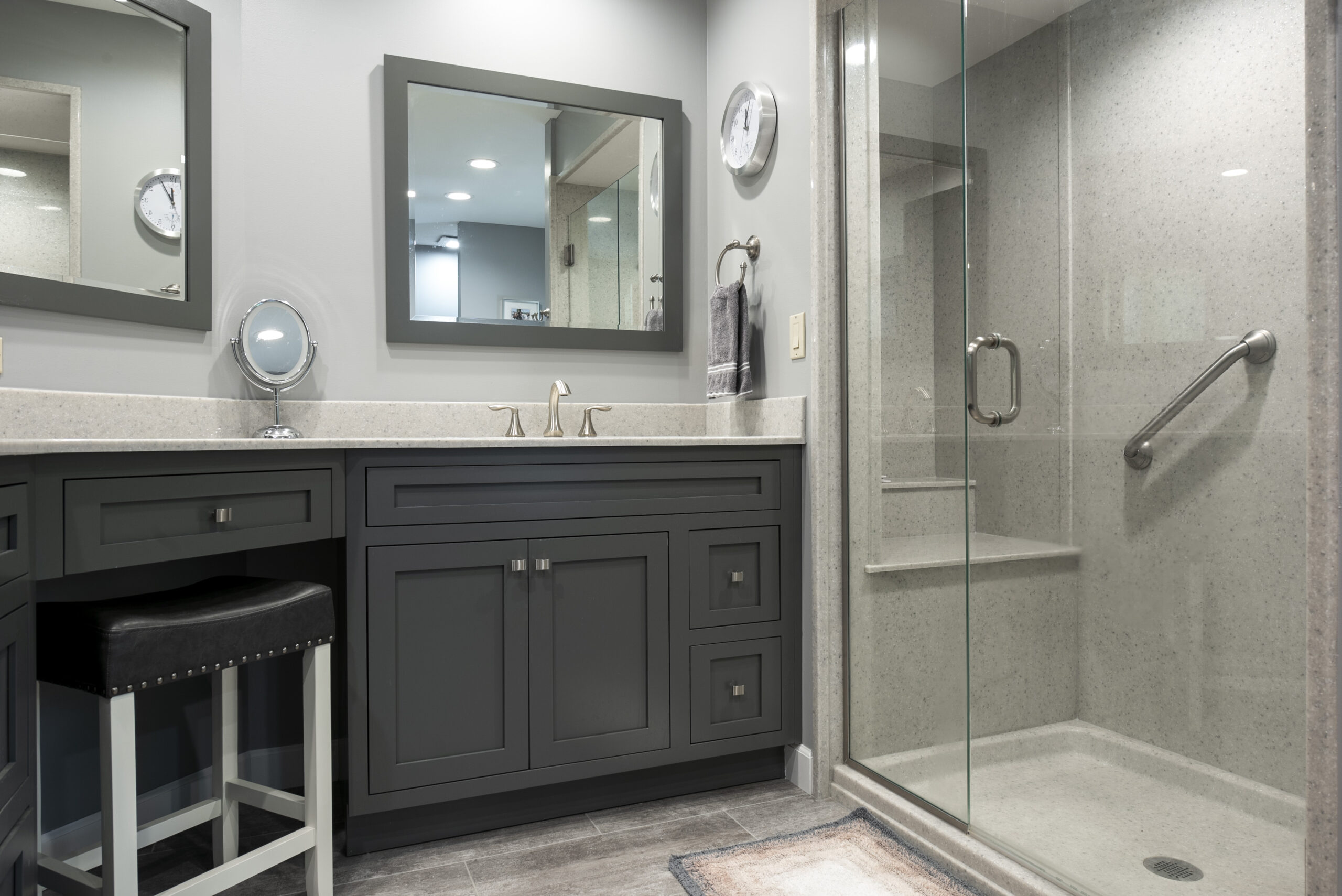 With hundreds of design combinations to choose from, our team will help you create a bathroom that reflects your style, supports your needs, and fits your daily routine. We also offer thoughtful aging-in-place solutions that enhance safety while maintaining a polished look, including: